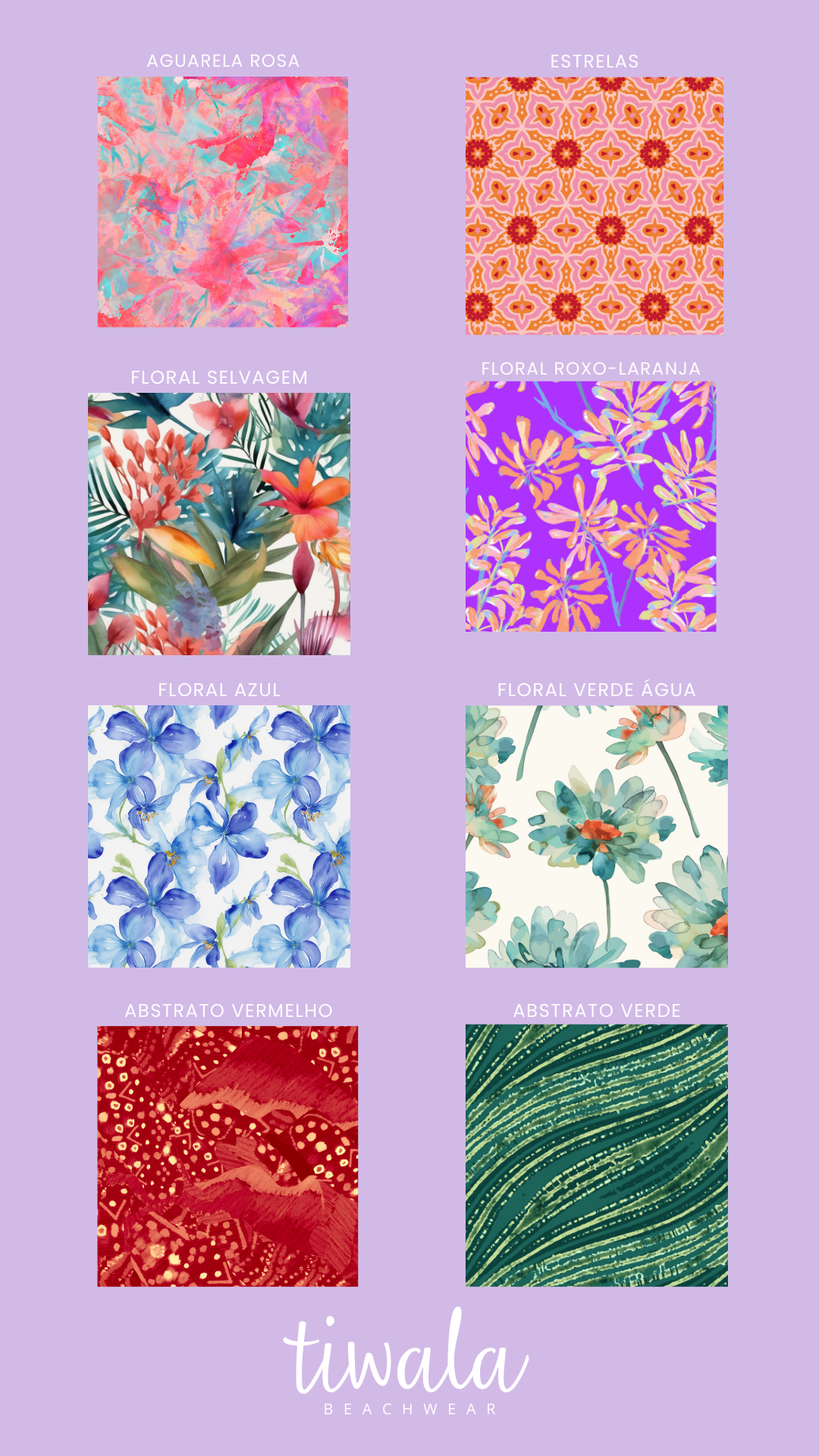 Os padrões florais e abstratos são muito pedidos por vocês, por isso este ano trouxemos vários, com uma diversidade de cores com vibes do paraíso!