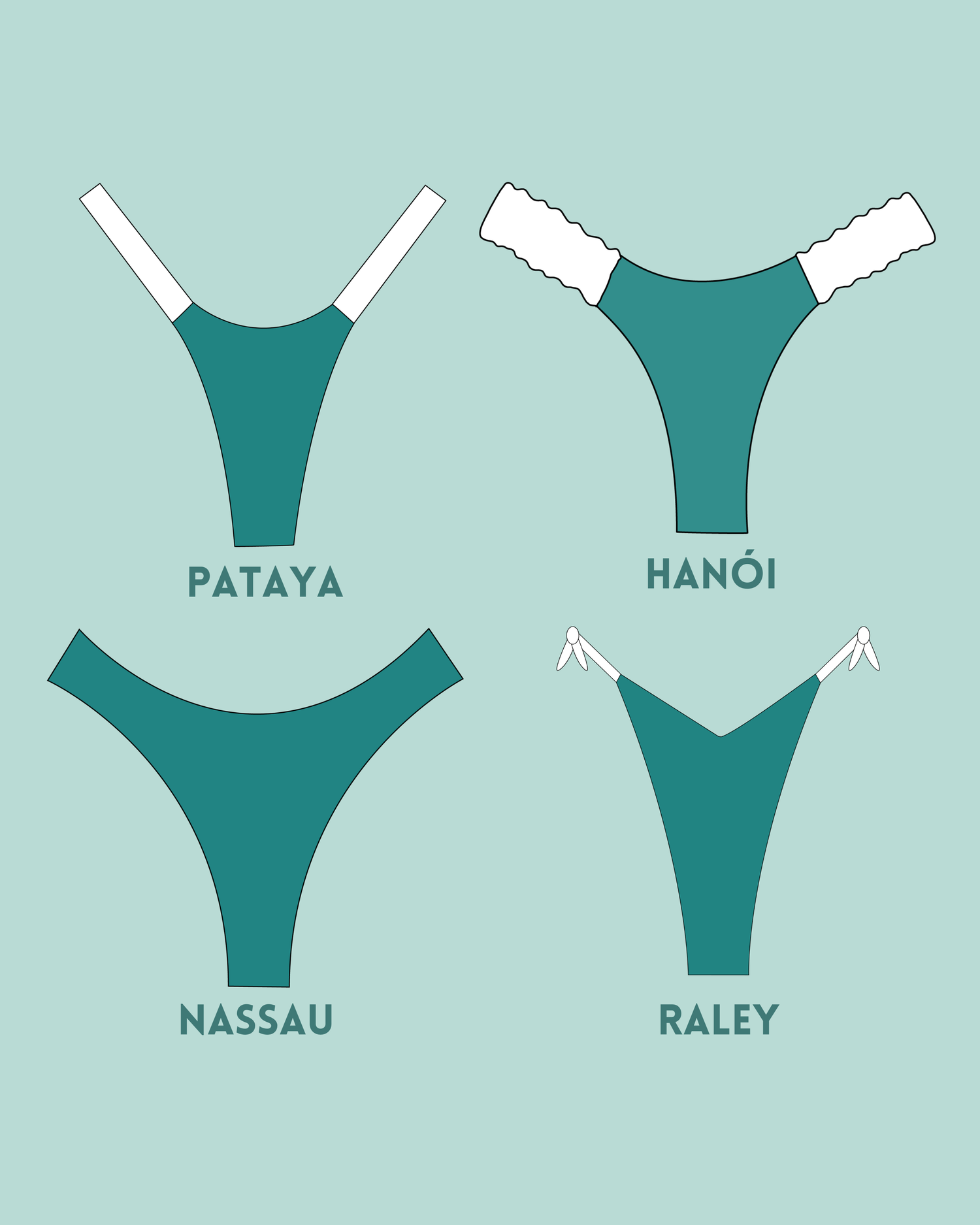 Estes modelos de cueca são os modelos mais cavados (frente e costas) e mais descidos (cintura). A cueca Khao, Gili, Mai e Cielo são variantes do modelo Nassau.