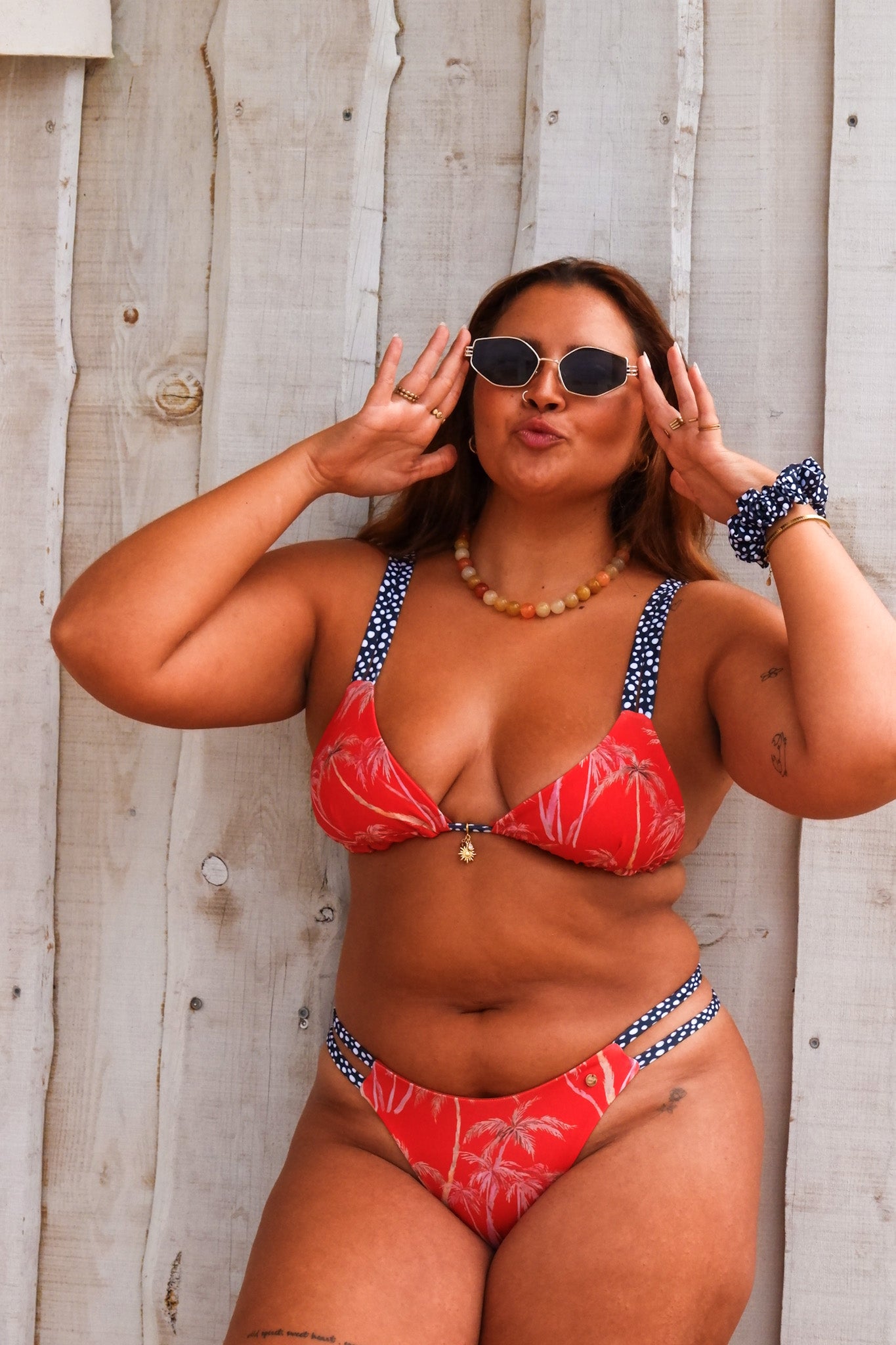 A modelo está a vestir M de top e L de cueca (tanga).